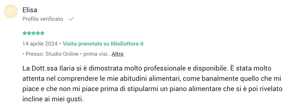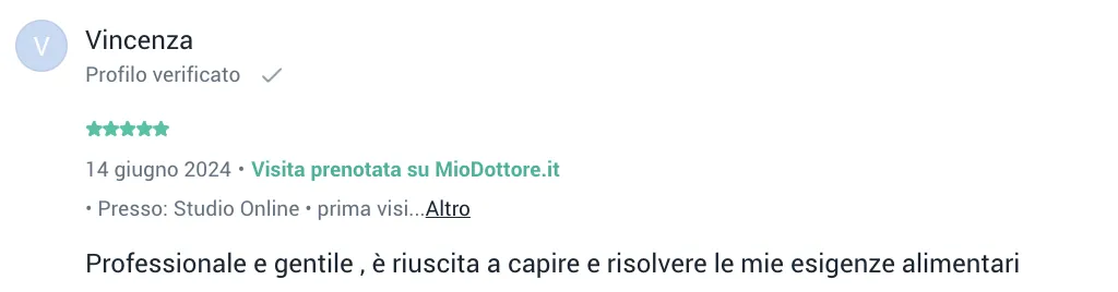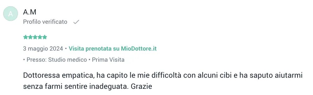 Esperta nelle patologie gastro-intestinali (allergie, intolleranze, celiachia, reflusso, IBS etc.)